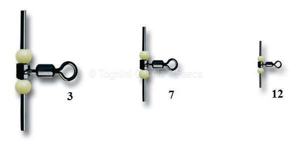Girella rolling inserita su tubetto passante con rispettive perline fluorescenti, questo accessorio è utile per realizzare travi per surf casting o bolentino.