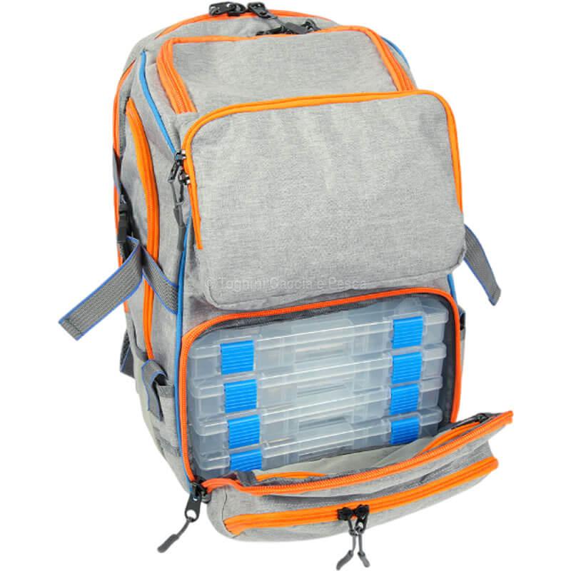 Colmic Colorado 3600 è lo zaino definitivo per la pesca. Include 4 scatole porta-artificiali, supporti per canne e fondo gommato. Massima capienza Grey Essence.