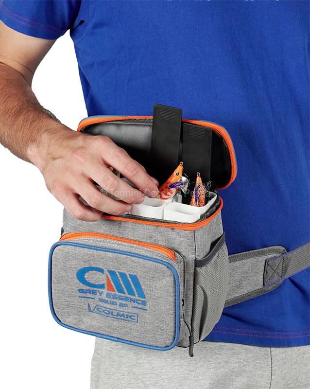 Colmic Grey Essence Squid 80 è molto più di un semplice marsupio: è un sistema di gestione portatile progettato specificamente per gli amanti di seppie e calamari. Pensato per essere indossato in vita, questo marsupio permette di muoversi liberamente lungo moli, scogliere o spiagge, mantenendo la propria selezione di egi e accessori sempre a portata di mano.