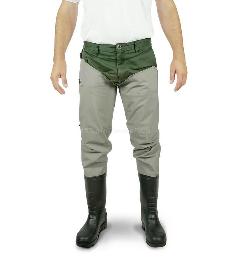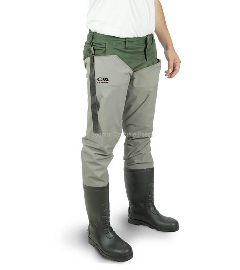 Colmic Hip Waders in 210T Taslon, lightweight, practical and waterproof. Ideal for shallow water fishing with maximum freedom of movement.