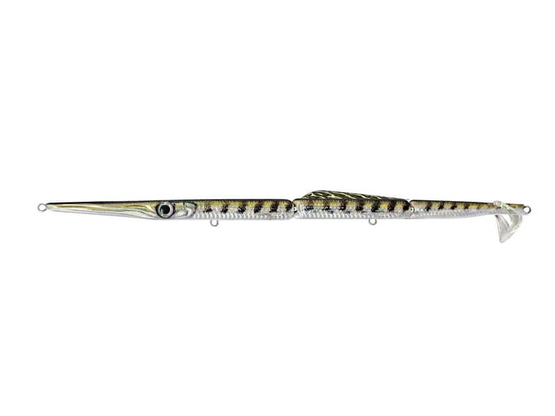 The Kàbo AGUGLIA JOINTED 255 by Jatsui is a 255 mm jointed needle bait engineered for targeting large pelagic predators. Its multi-segment body construction delivers an ultra-realistic swimming action, accurately mimicking the erratic and frantic movement of a fleeing needlefish.