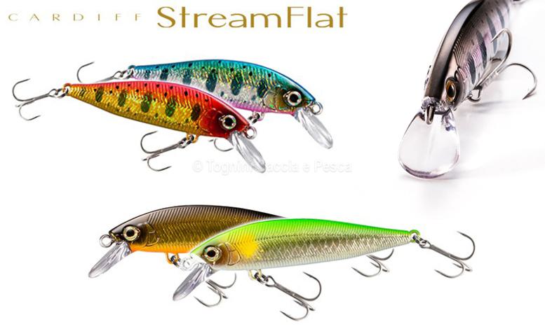 The Cardiff Stream Flat is a sinking trout lure that features Scale Boost for a natural prey-fish profile, combined with a distinctive wide blade that bites int