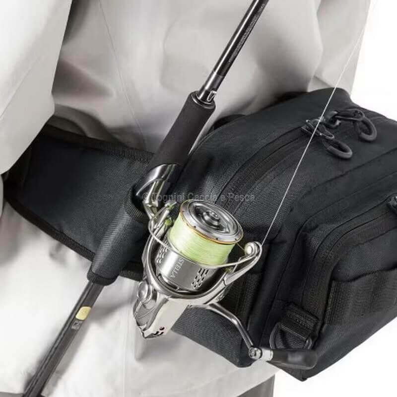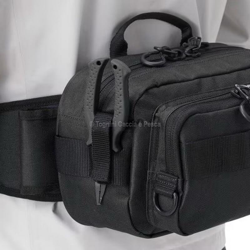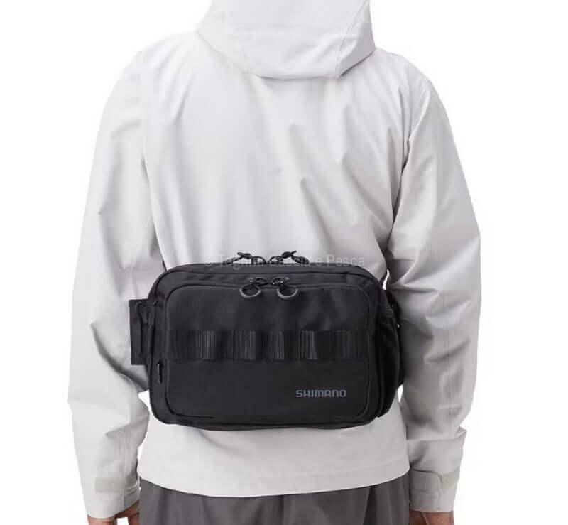 Featuring multiple well-organized compartments, it allows efficient storage of lures, rigs, and essential accessories. The ergonomic design with adjustable belt provides a stable and comfortable fit, while durable zippers and Shimano technical details enhance accessibility and gear security.
