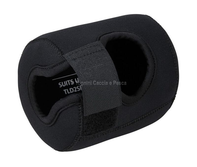 Shimano neoprene cover for overhead reels: shock-resistant, moisture-proof, perfect fit even on rod. Ideal for safe transport and long-lasting protection.