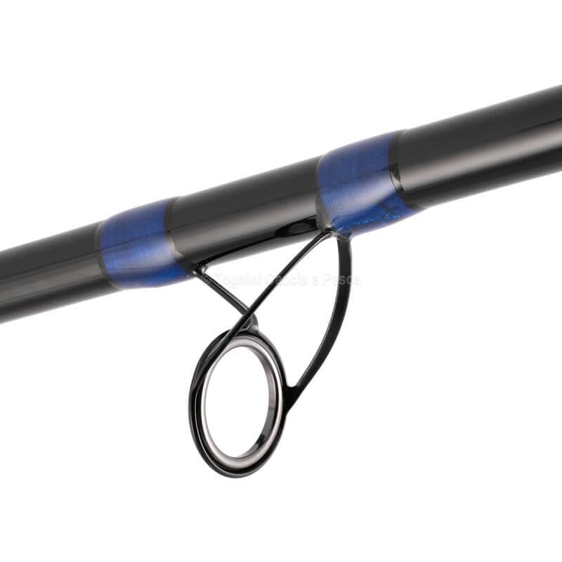 The technical equipment includes double-leg S-SiC guides with an anti-tangle "K" frame and anti-corrosion treatments, ideal for those fishing in harsh marine environments. The stainless steel and rubber DPS reel seat is sized to accommodate large reels, ensuring absolute stability. The design is completed by the non-slip Sensi Touch grip at the base, ensuring a firm and comfortable hold for better leverage during the cast.