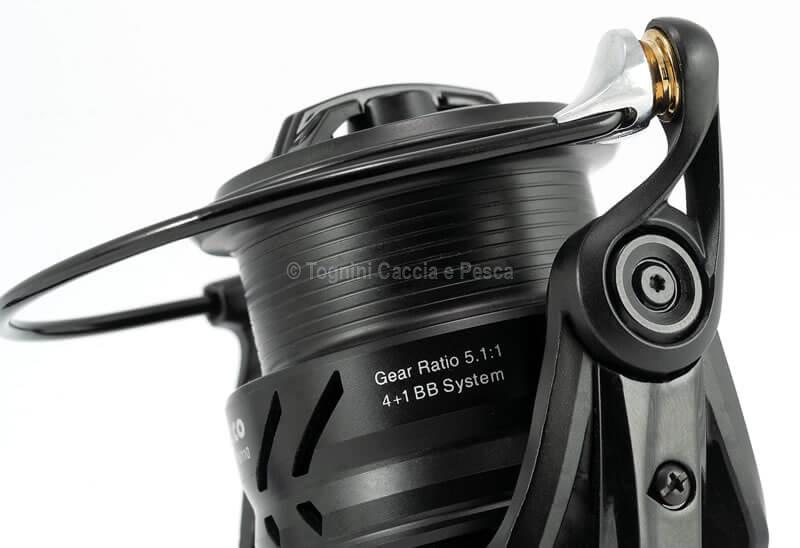 Smooth mechanical performance is guaranteed by 4 Long Life System ball bearings, supported by an infinite anti-reverse (One Way Clutch) system that eliminates handle play. A standout feature of this model is the superlight aluminum spool with V-Spool profile: the V-shaped lip minimizes friction, allowing for longer and more accurate casts. Line management is further enhanced by the AS (Anti Twist System) roller, essential for preventing line twist, and the oversized Powerbail.