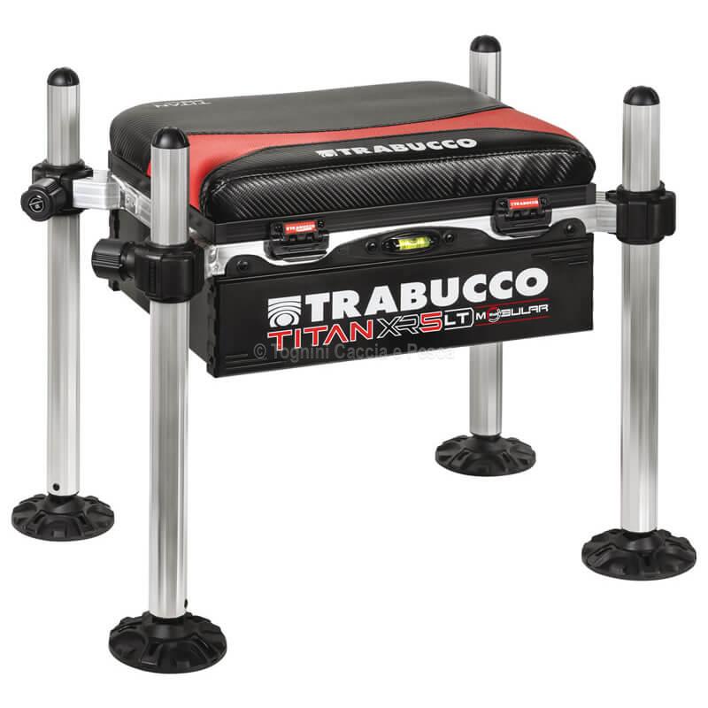 Trabucco Titan XR5 LT Ultra Light: the lightest and most compact seatbox in the XR5 series. 13cm base unit, 36mm legs, and customizable modular structure.