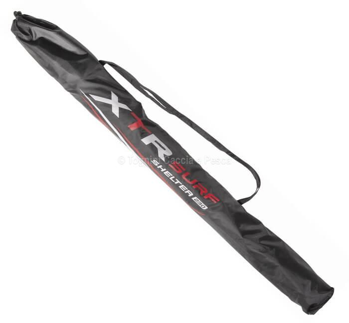 The new Trabucco XTR Surf Shelter fishing umbrella has a sturdy and lightweight construction, solid windproof steel ribs to withstand the most adverse weather conditions. Tough, yet lightweight, rain resistant 210D fabric with UV protection. Reinforced triple stitched seams, side ventilation windows. Improved wind resistant design to provide more coverage space. Strong locking system with "no-fail" system, advanced angle tilt function. D-rings for secure anchoring on windy days (pegs and ropes supplied as standard). Heavy duty center pole, nylon carry bag included.
