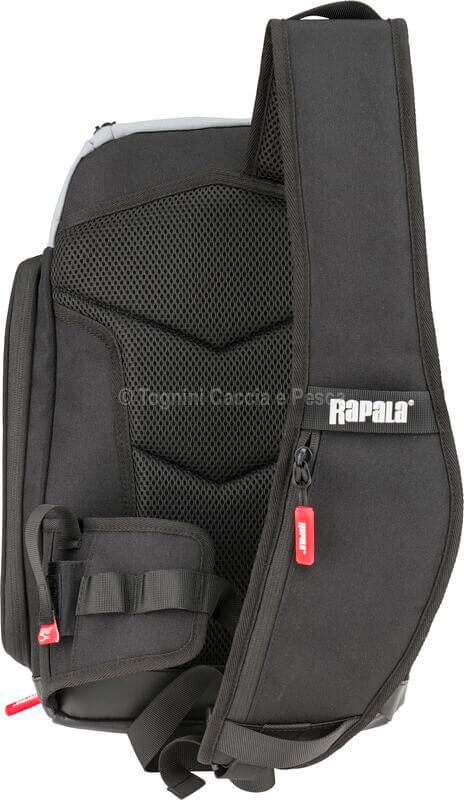 Pensata per l'organizzazione essenziale, può contenere comodamente due scatole porta-attrezzi Rapala 356 (misura 3700), oltre a spazio aggiuntivo per altri accessori. Il comfort è assicurato dalla tracolla imbottita in rete 3D e dal pannello posteriore ventilato, che offrono traspirabilità e riducono l'affaticamento durante le lunghe sessioni di pesca.