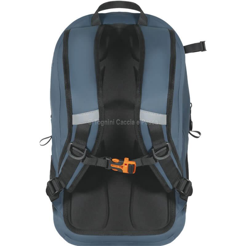 Ergonomia e Trasporto: Lo zaino è progettato per rimanere aderente al corpo durante il movimento. I doppi spallacci imbottiti sono rivestiti in materiale traspirante per il massimo comfort e sono dotati di cursori a sgancio rapido. Questo sistema permette non solo di regolare la lunghezza, ma di indossare e togliere lo zaino con estrema rapidità, facilitando il trasporto anche sopra abbigliamento ingombrante come waders o giacche da pesca.