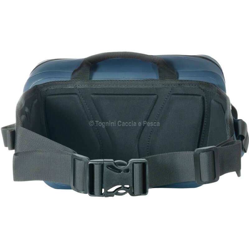 Comfort e Praticità: Il marsupio è dotato di una fascia lombare leggermente imbottita che assicura comfort durante le lunghe camminate in riva al mare o al fiume. La cinghia di regolazione è affidata a robusti blocchi in ABS ad alta tenuta, che mantengono il marsupio saldo in vita anche a pieno carico. Per facilitare lo spostamento rapido, è presente anche una pratica maniglia centrale superiore.