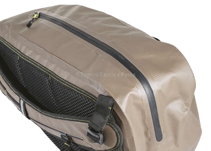 Trabucco Seal Strom Slick Pack 20L: Zaino monospalla stagno con cerniera laterale protetta da fasce gommate. Ideale per spinning e nautica.