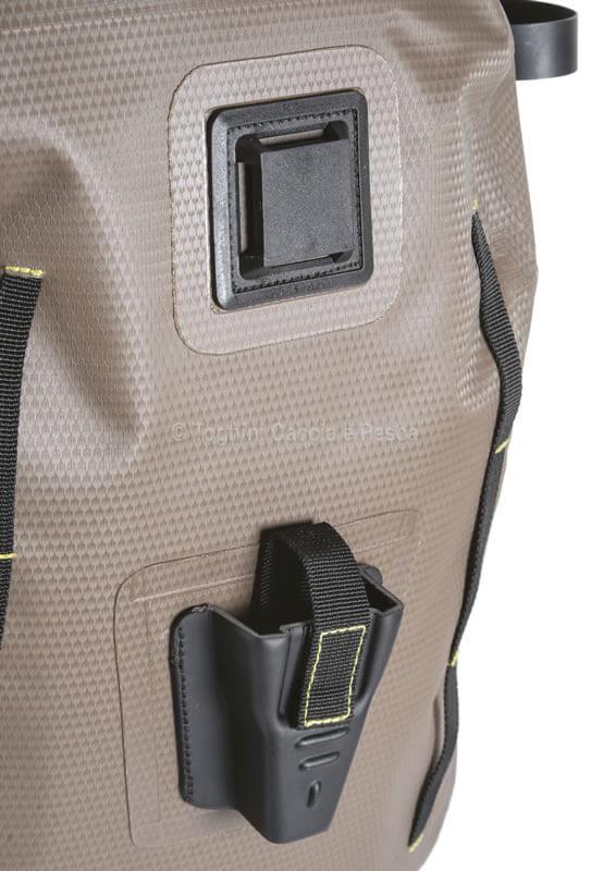 Accessori Esterni: Asole in tessuto elastico per fissaggio canne e doppie fascette regolabili laterali con blocco di sicurezza.