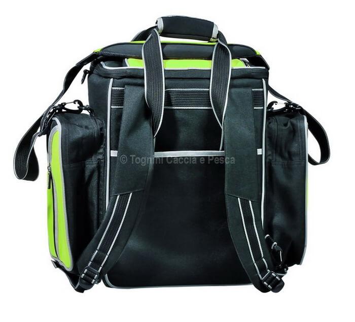 La nuova borsa XTR Surf Team Competition Trabucco ha grande capacità, vano superiore, scatole interne e tasche laterali. Il vano superiore è capace di conservare comodamente fino a 4 mulinelli di taglia 10000. Fornisce la comodità necessaria per chi deve portare una grande quantità di attrezzatura, mulinelli, abbigliamento ed accessori, il tutto in una unica soluzione trasportabile a zaino o tipo borsa. La struttura è completamente rigida e si regge anche quando si asportano le 5 scatole interne che sono in plastica con scomparti modulabili. La qualità dei materiali, cerniere, scatole e tessuto 1200 denari, sono dettagli di questo splendido zaino. Grande vano superiore, porta mulinelli ed abbigliamento